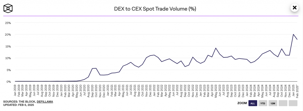 Cette évolution reste à nuancer car la liquidité du marché décentralisé reste beaucoup moins importante que celle sur les CEX et n’attire pas autant de liquidités que les ETF BTC.